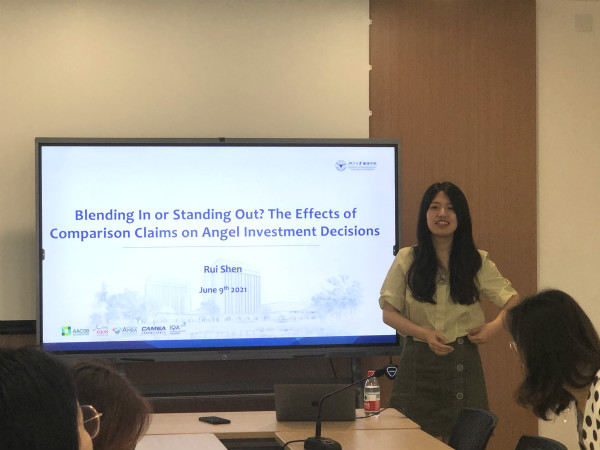6月10日中午,工商管理学术新星项目师生在浙江大学紫金港校区管理学院A823会议室迎来了第二次学术交流冷餐会。本次冷餐会的分享嘉宾为乐动在线登录官网百人计划研究员沈睿,以及2018级工商管理本科生邱若琳。她们的报告主题分别为“Blending In or Standing Out? The Effects of comparison Claims on Angel Investment Decisions”、“时间节点对享乐适应的影响”。乐动在线登录官网市场营销系副教授王丽丽主持了本次会议。乐动在线登录官网市场营销系百人计划研究员杨浙帅以及项目学生们参加了本次讲座。