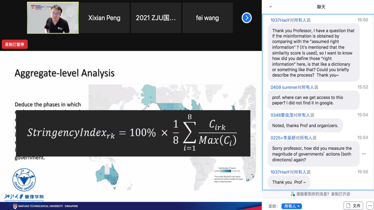 新冠肺炎的爆发使人们越来越依赖社交媒体获取信息和进行社交。然而,这个虚拟的天堂正日益被大规模的信息传播所取代。在本次演讲中,蔡峻锋教授的研究揭示了一种前所未见的数字复原力,这种复原力源于个人对维护集体福祉的崇高奉献。本研究揭示了病毒诉求在防止错误信息扩散的交际防御中的作用并强调了数字复原力对社区流动性与政府干预相结合的影响。研究结果表明,个体确实会避免与信息诉求共享错误信息。蔡峻锋教授的本项研究切合当下蔓延全球的新冠疫情背景,极大地开拓了参与师生的视野。
