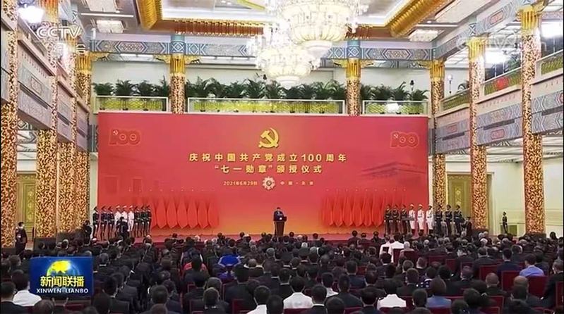 中共中央总书记、国家主席、中央军委主席习近平向全国“两优一先”“七一勋章”获得者颁发表彰并发表重要讲话。