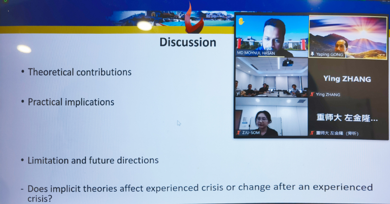 6月1日上午,乐动在线登录官网领导力与组织管理学系学术讲座于线上和线下同步进行。香港科技大学管理学系龚亚平教授作“员工危机经历有助还是阻碍创造力:威胁僵化理论和内隐理论的整合研究”主题分享,领导力与组织管理学系吴苏青老师主持了本次讲座。