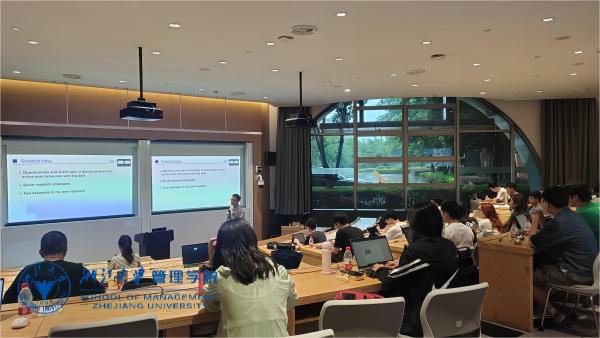 窦军生副院长代表管理学院对来自世界各地的暑校参与者表示了欢迎。窦院长说到数字时代已经到来,它深刻改变着人们的思考方式和行为方式。我们生活的方方面面也都与数字密不可分。数据已日渐成为数智决策过程中的重要的部分。通过本次暑期学校,窦院长希望参与师生可以学习到最前沿的理论以及数据分析的技术;更重要的是,本次暑校可以对所有师生有所启发。