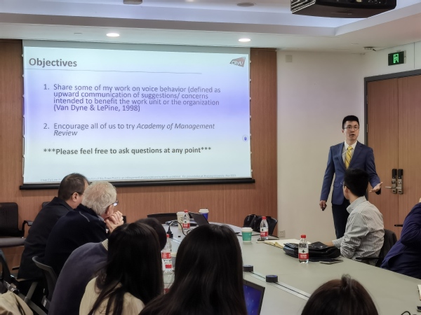 1117日上午,“与主编面对面”系列讲座特别邀请到了香港城市大学副教授,著名管理学期刊Academy of Management Review (AMR)副主编Chak Fu Lam围绕他本人关于建言行为的研究和从编辑角度探讨为何会被AMR拒稿这两个主题展开了深入探讨。讲座由领导力与组织管理学系胡琼晶副教授主持。