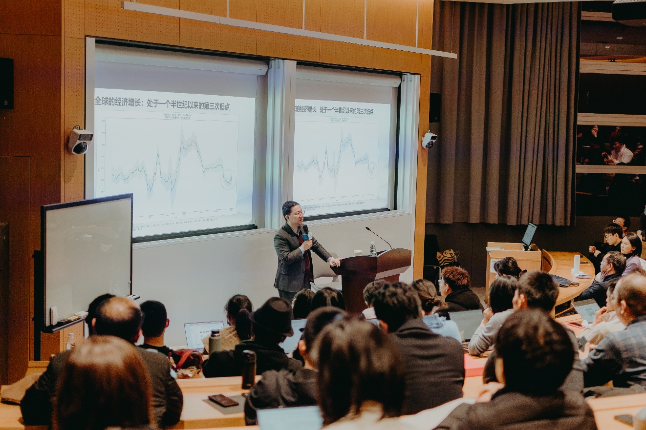 王涵博士以“大变局与新时代”为题眼,分析了全球经济增长的历史变迁与金融市场走势,以及中国经济增长面临的机遇与挑战,为我们解答了诸如人口逆增长、消费降级、股市低迷、房地产走势、地缘冲突等一个个热点问题,让我大为震撼并受益匪浅。作为一名商学院学生,宏观视野和判断力是非常重要的,也是我在工作中需要持续提升的能力。这是我听过一小时内有效信息密度最高的讲座,高度集中注意力仍有无法消化之处,感谢学院的安排。