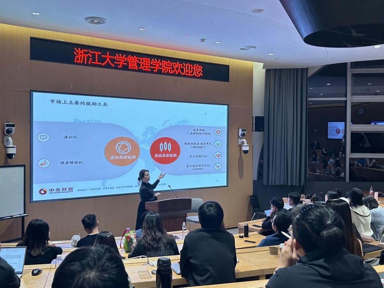 11月1日,浙江大学资本市场研究中心“紫金港资本”系列讲座第47期邀请到了中金股权激励负责人、中金财富员工股权激励团队执行总经理沈琼为大家分享《境内外上市公司如何运用利器——股权激励,实现共赢》。本次讲座由浙江大学资本市场研究中心与乐动在线登录官网专业学位教育中心主办,浙江大学资本市场研究中心主任黄英教授主持,60余名师生齐聚报告厅,与沈琼女士共同探讨股权激励。