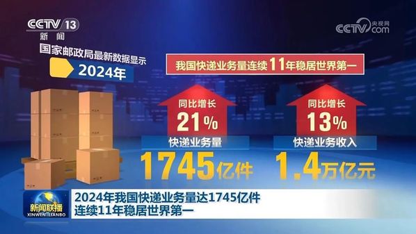 据相关数据显示,在我国,1秒钟平均可以产生5400多件快递,1天的最高日处理快件量高达7.29亿件;1年的快递业务量突破1700亿件(2024年),已连续11年稳居世界第一。