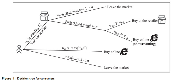 为此,他们通过博弈论理论建模,构建了一个“垄断市场模型”,这个市场模型中有一个网络品牌,它可以通过自有网络渠道进行产品销售,也可选择把产品入驻到某个线下零售商的门店,来方便消费者进行体验。在这个过程中,零售商会对这个入驻门店的品牌收取费用。