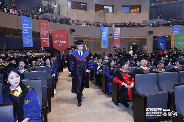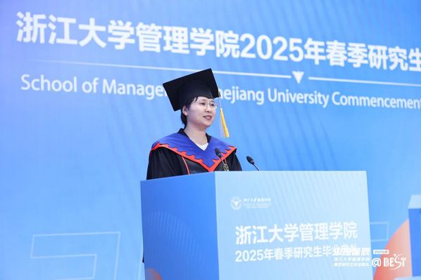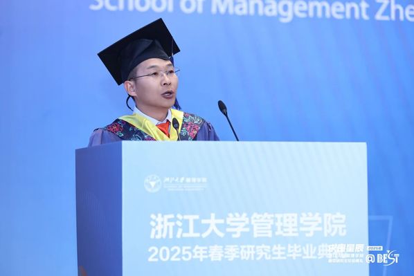 同时,他感谢每一位陪伴他度过这段难忘时光的同学,并呼吁全体毕业学子们:带着求是创新的精神与所学知识,勇敢迈向新的征程,去创造属于浙大管院人的共同辉煌。