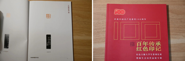 杨海坤在庆祝中国共产党建党100周年红色主题大学生篆刻比赛上的获奖作品“天佑中华”