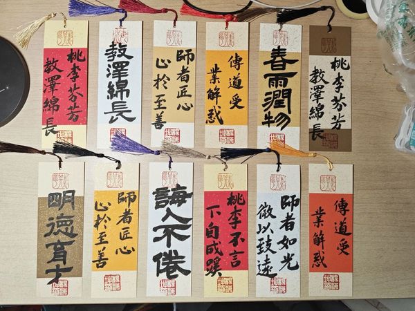 偶尔,杨海坤会自己制作书签赠予友人,自己写字、印上自己刻的印章,俨然成了独一无二的“个人文创”。