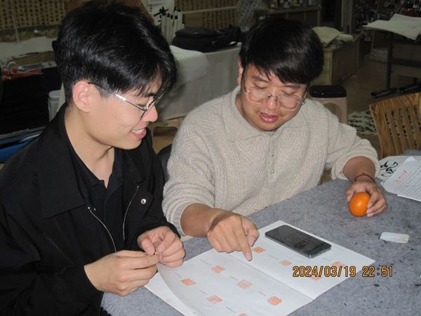 “艺术最大的魅力就是它不准确,”他强调,“同一件作品,同一个内容,即使是同一个人刻两次,都没有办法复现一模一样的作品。艺术,是一件瞬时性的工作。”刀锋划过石面的微妙力度、即兴的调整、甚至偶然的“失误”带来的意外美感,都是冰冷的机器难以精准模拟的温度和生命力。尽管篆刻是小众爱好,杨海坤在浙大书画社找到了归属。社团里近二十位篆刻同好,每周一次的老师授课,以及与志同道合朋友们的交流,构成了他学业之外宝贵的精神家园和技艺精进的土壤。